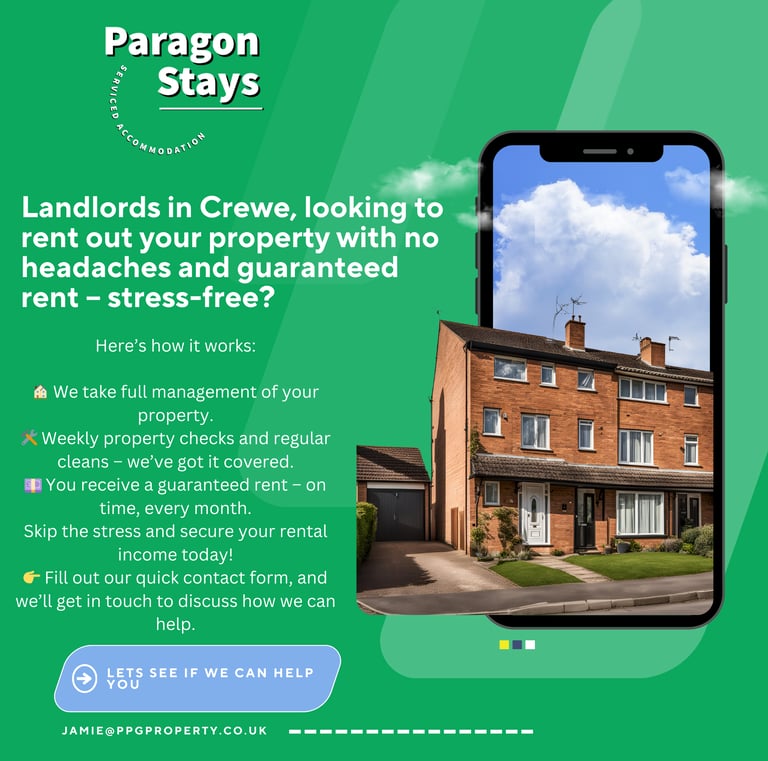 We are in need of properties in Crewe and surrounding areas due to long term bookings of professionals and trade workers needing accommodation. If you have any properties available or know of any, please get in touch